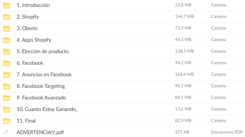 Excelente Material, no solo cubre lo basico de la instalacion de la Tienda cn shopify si no, abarca la estrategia de marketing con Fb Ads, adicional de tips muy personales sobre tecnicas de busquedas de productos. Muy recomendado