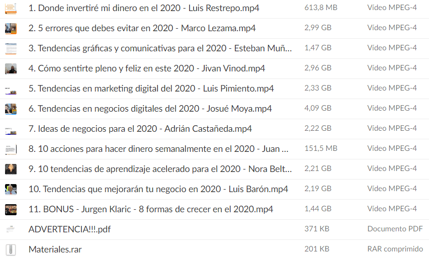 10 Tendencias para que tengas la mejor década de tu vida, 11 Sesiones de video y 3 Archivos descargables, 10 acciones para hacer dinero semanalmente en el 2020